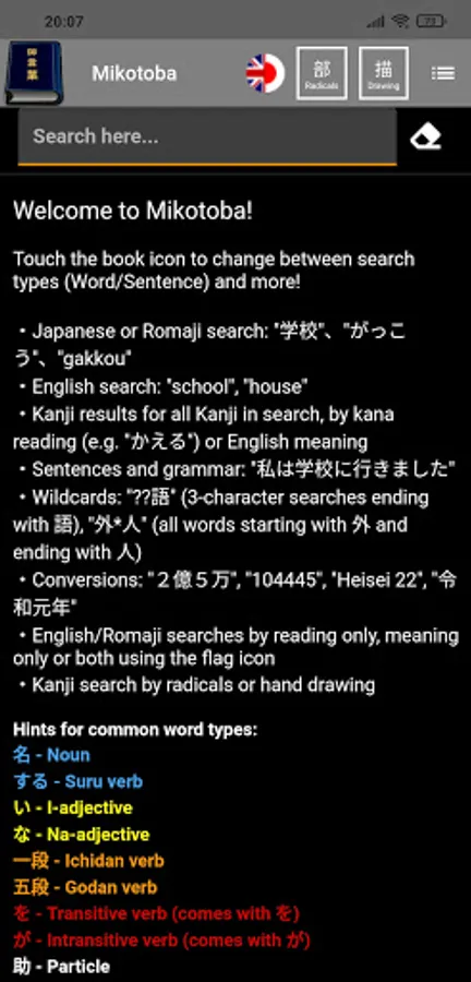 - Quick, real-time search in Japanese (Kanji/Kana/Romaji) or English
