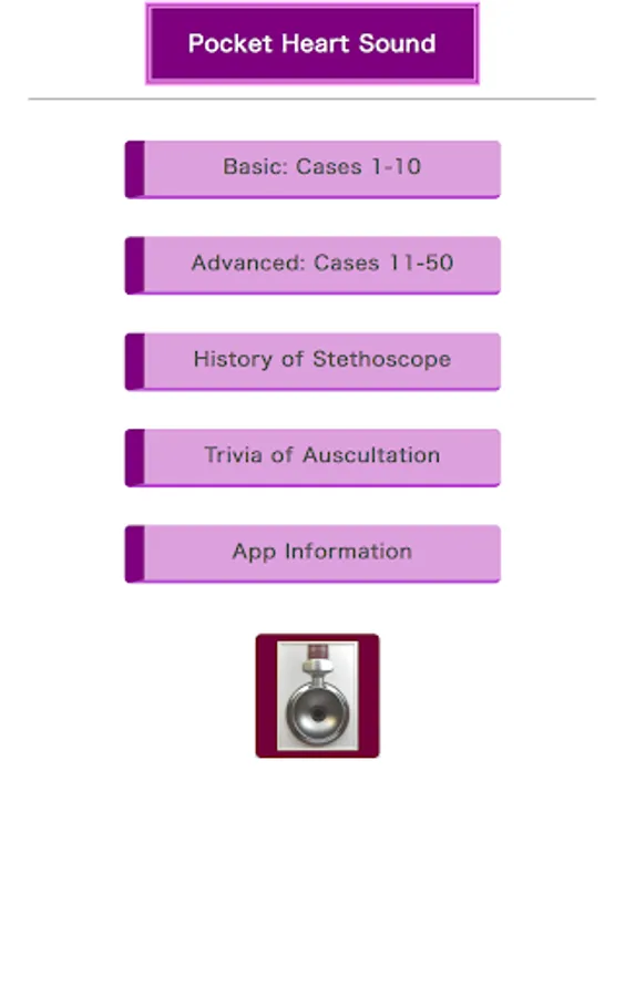 This app is designed to describe the pleasure of communicating with the heart; 150 phonocardiograms (PCGs) were selected from more than 5,000 recordings: Each PCG is shown with sound, and 50 PCGs have both sound and echocardiography. The history of the stethoscope and trivia for cardiac auscultation are also included.