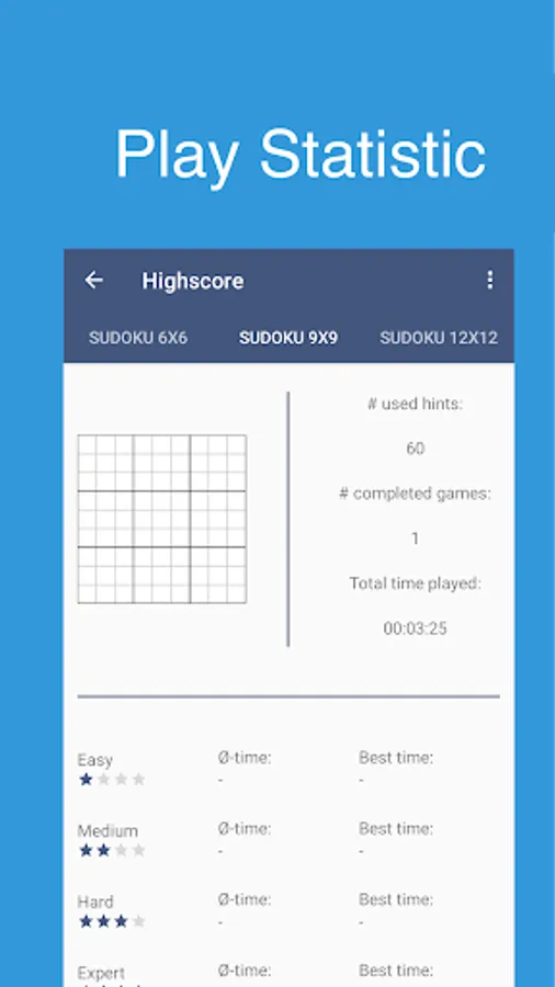 ✓ Statistics - There is a stats feature for each difficulty so that you can examine the game that played at any time.