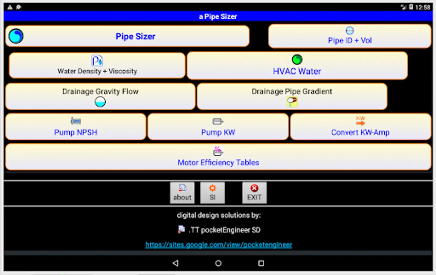 Pipe sizing and pipe friction loss calculations have never been easy. Not anymore! With a Pipe Sizer, you can do your pipe design and sizing at anytime, anywhere...
