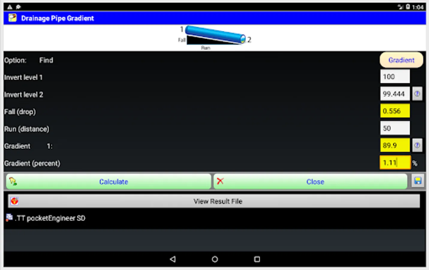 - Drainage pipe gradient:- find pipe gradient, pipe invert levels, pipe run, pipe drop for sewer and drainage system.