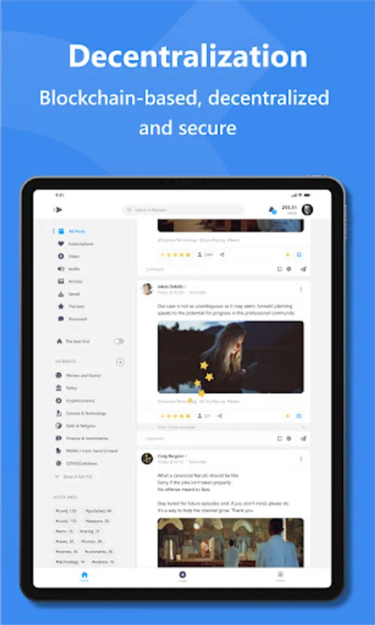 A Revolutionary anti-censorship decentralized publishing and social platform. Based on the blockchain technology, it runs on a set of computers around the world, not controlled by any single entity. Self-policed by users with good reputation where nobody records your keystrokes, viewing habits or searches.