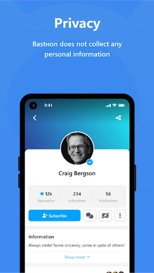 Privacy and Security are completely respected. You do not need to use an email or phone number to register. Bastyon does not store any personal data, not even your IP address. We REALLY value your privacy. Your privacy is safe. In addition, hackers cannot enter your account and change your password.