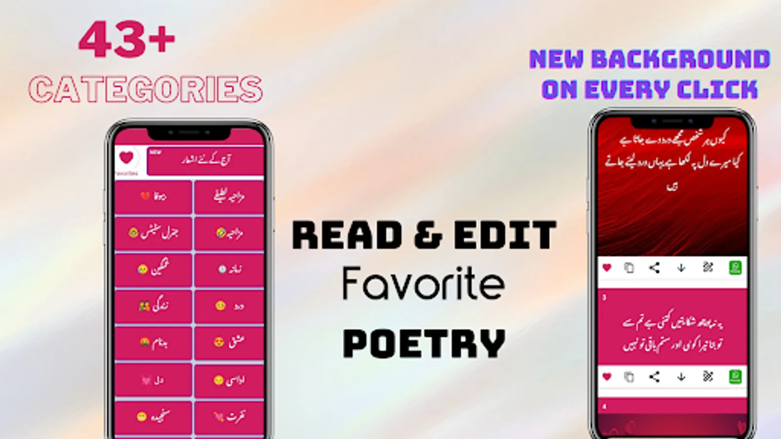 "Allama Muhammad Iqbal" Poetry is now available in this app. Allama Iqbal Urdu poetry app has a vast collection of Allama Iqbal Shayari in Urdu with images that you can share on all social media platforms. Ghalib and Juan Elia Poetry are also available for editing and sharing your feelings with your friend circle.