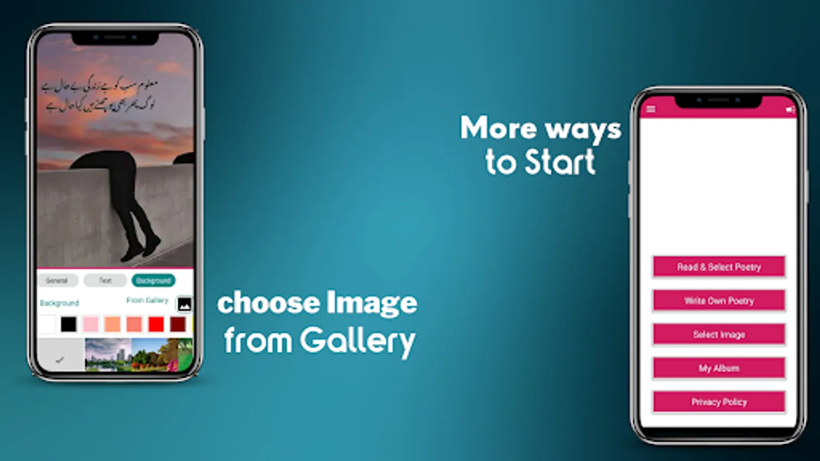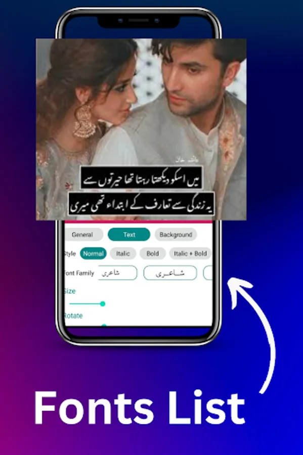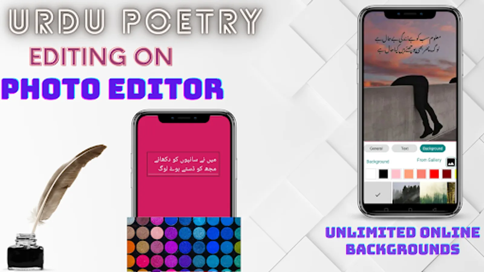 The Urdu Poetry on Photo Editor app for 2023 offers various Urdu fonts and text editor styles. Now you can use the Text on Photo Editor app to write Poetry Text on Photo in Urdu. The Urdu Offline Poetry app has a unique set of features and capabilities like Text to Photo. This Urdu Poetry on Photo Editor offers a simple interface that allows users to add text on a Pic also Urdu on Photo quickly and easily and add Urdu Love poetry text to the photo.