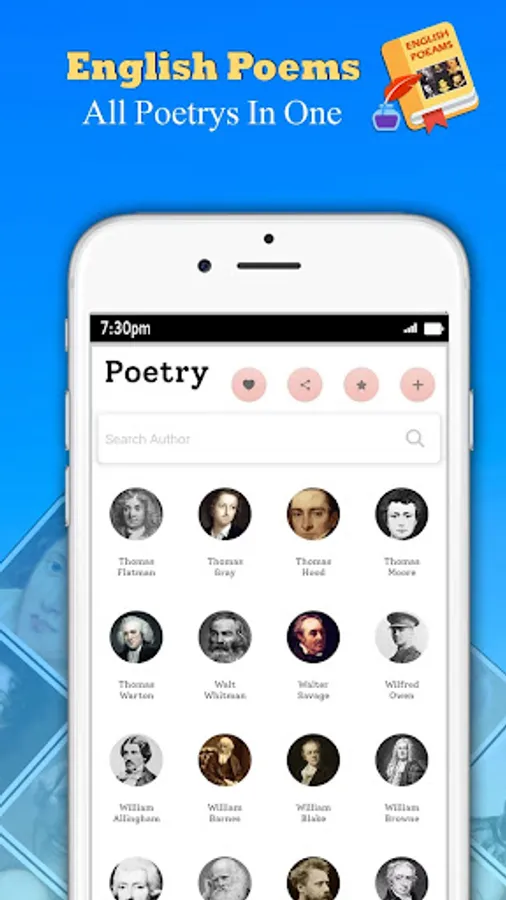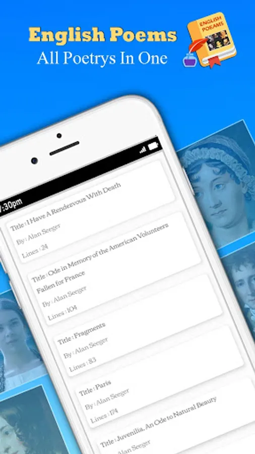 π This application is for the people who love to read poems and are a fan of poetry. We are providing English poems which contain 100+ poets and their collections of poems which are 3000+.