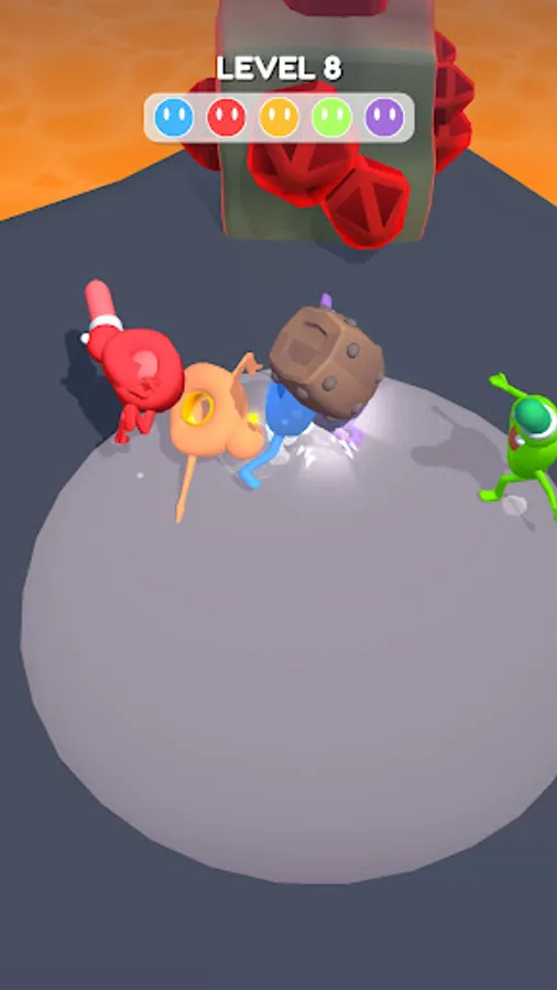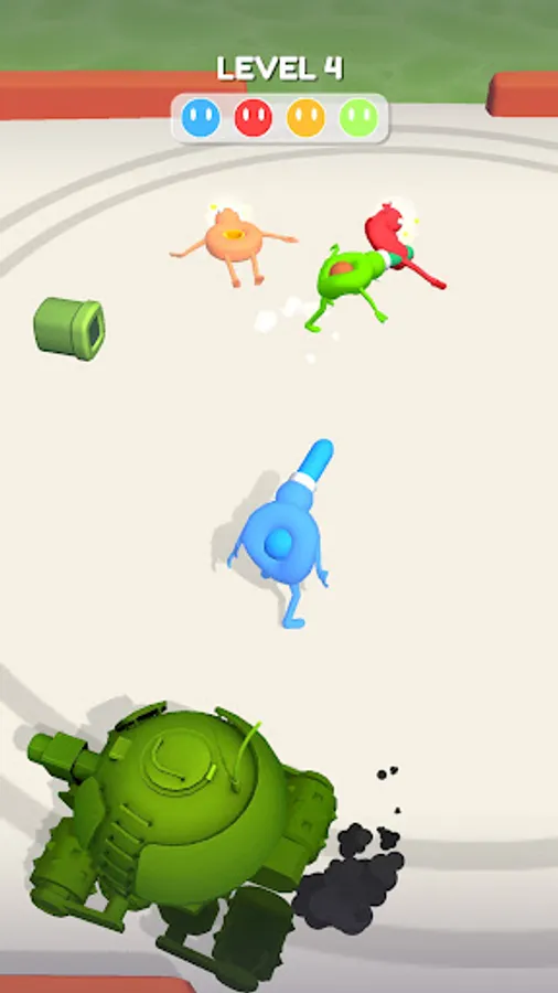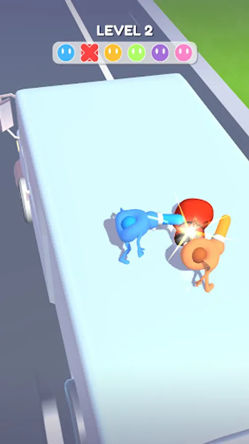 Your character has a hole in his body and a spike on his head. Your task is to get the pin into the hole of the enemy, spin it and throw it out of the location.