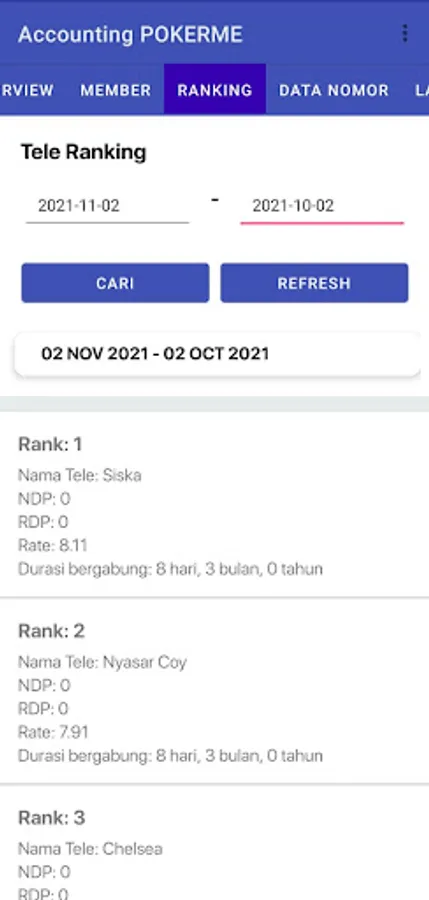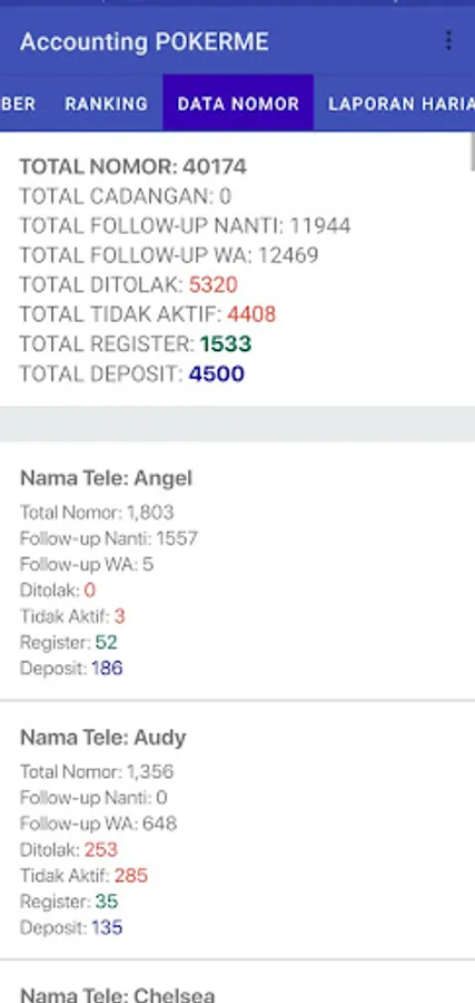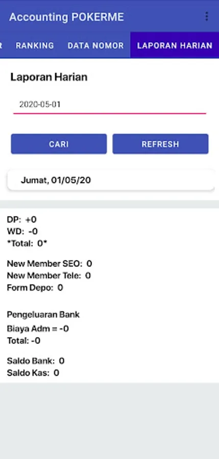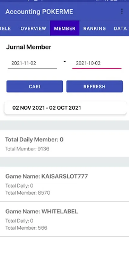 POKERME Accounting is an application to view all data related to transaction data, members, tele ranking and number data. The available features include: