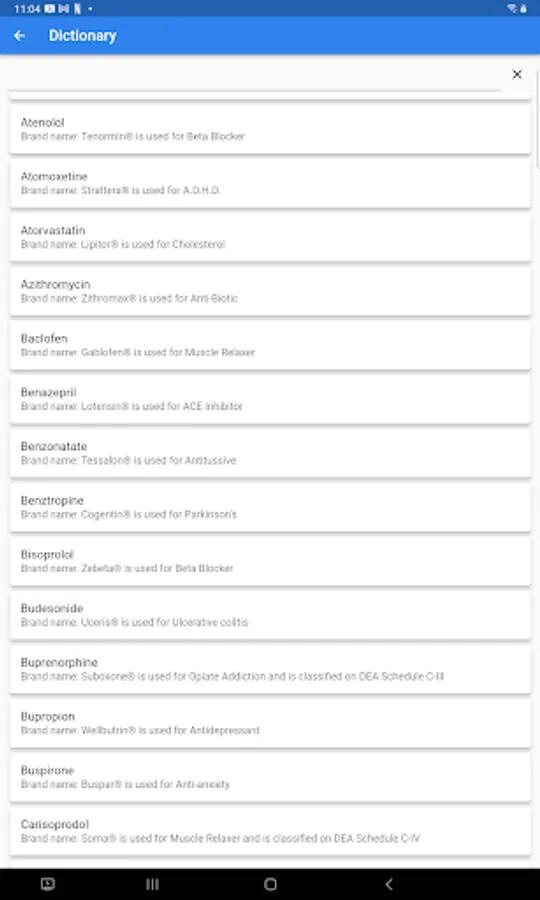 Drug Names Study Guide is a quick study guide for the top drugs used in the health care industry (especially pharmacy techs and nurses). The app is priced right with a no frills design to get you straight to the information you need to study.