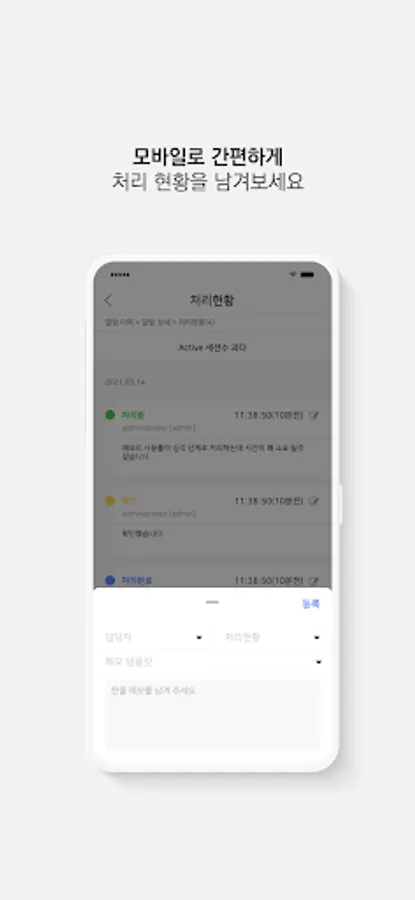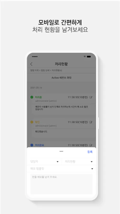 - Alarm details: detailed alarm description, performance summary, notification, processing status registration, processing status check