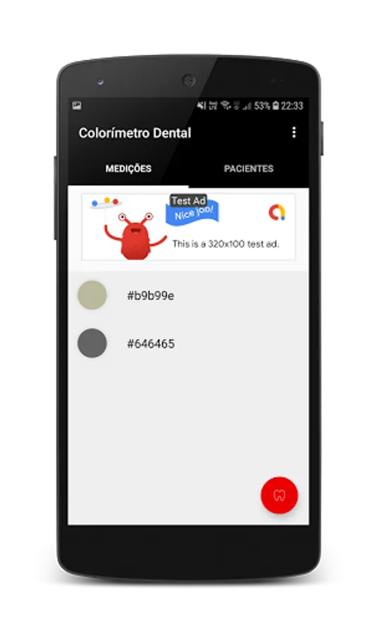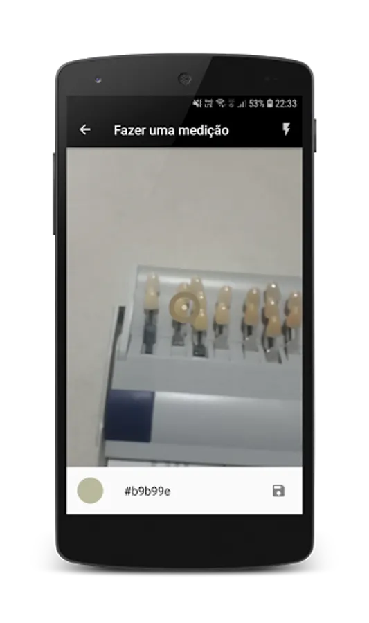 Simple position the central measurement point over the teeth and touch the screen. After that, the HEX value of the color will be exhibit on the screen. You can save it and make other measurements.