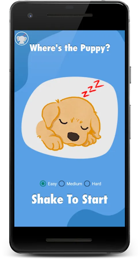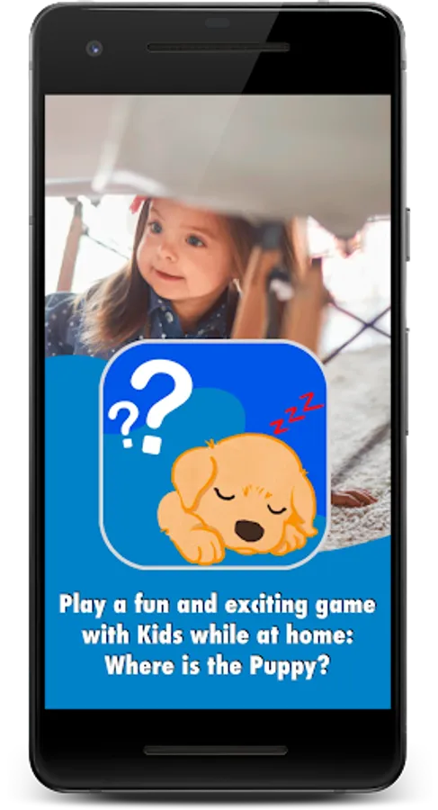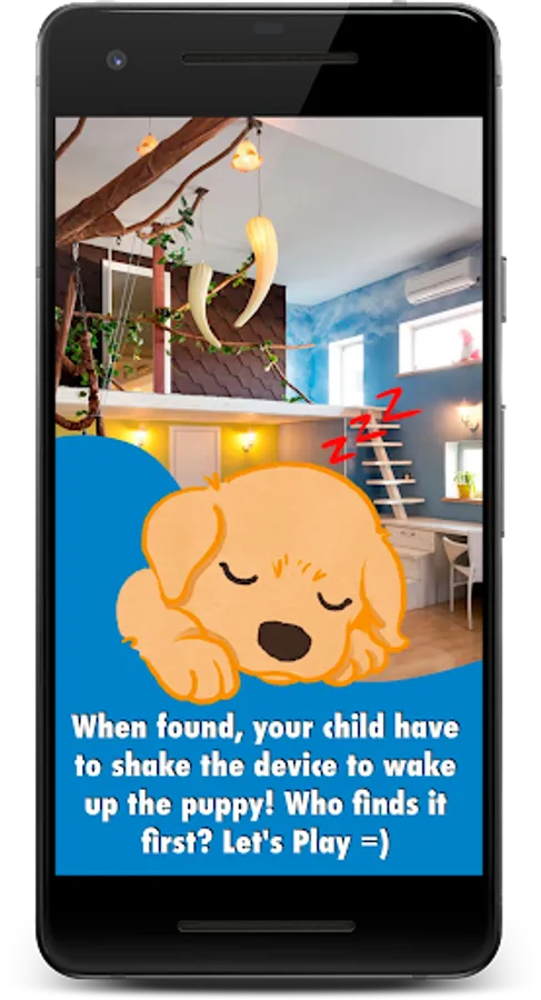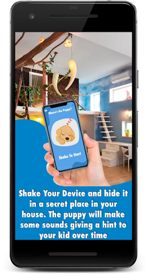 Pick up your phone and shake it to make it start. Ask your kids to go to another room. Hide your phone in some quiet place with the screen upside down. The puppy will make an sound when the game starts!