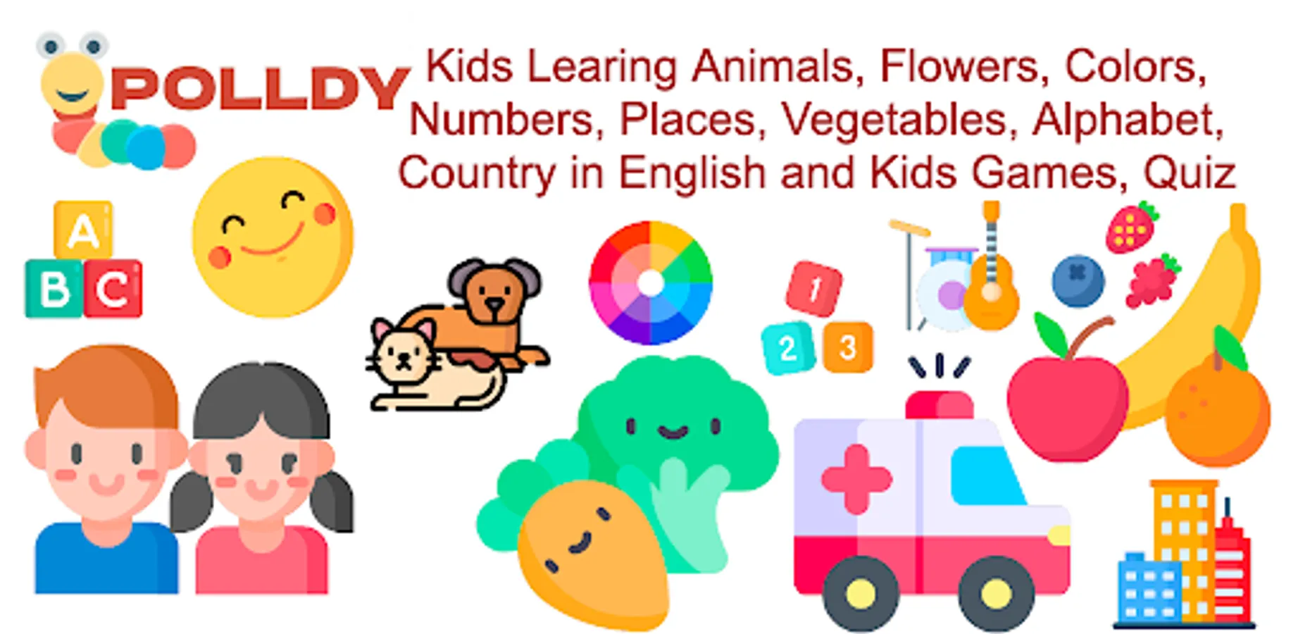 Kids can learn the animals, learn vegetables, learn colors, learn vehicles, learn numbers, learn alphabet, learn part of body, learn jobs, learn musical instruments, learn foods, learn shapes and learn fruits, learn in English with POLLDY App also quiz animals, quiz vegetables, quiz colors, quiz vehicles, quiz numbers, quiz alphabet, quiz part of body, quiz jobs, quiz musical instruments, quiz foods, quiz shapes and quiz fruits. You can play snowman and memory games.