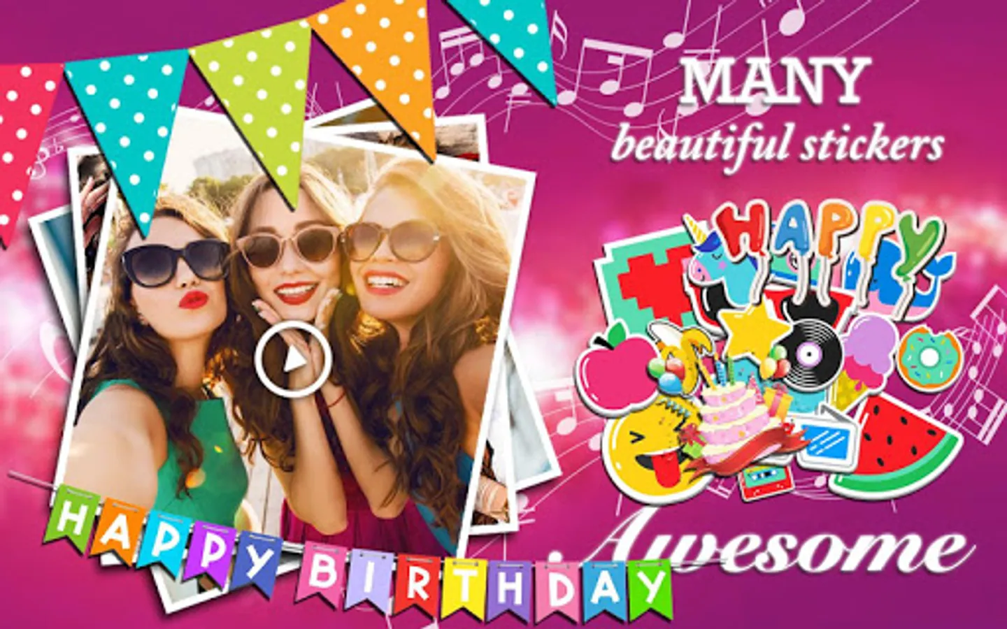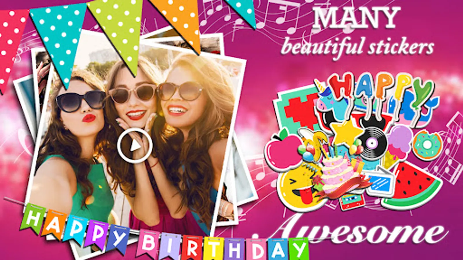 Do you want to decorate your video more lively? Quite simply, Happy Birthday Photo Video Maker has a library extremely terrible of over 5,000 icon and sticker funny, extremely adorable. Will help embellishments for your photo. This is the best video editor, photo slideshow maker.