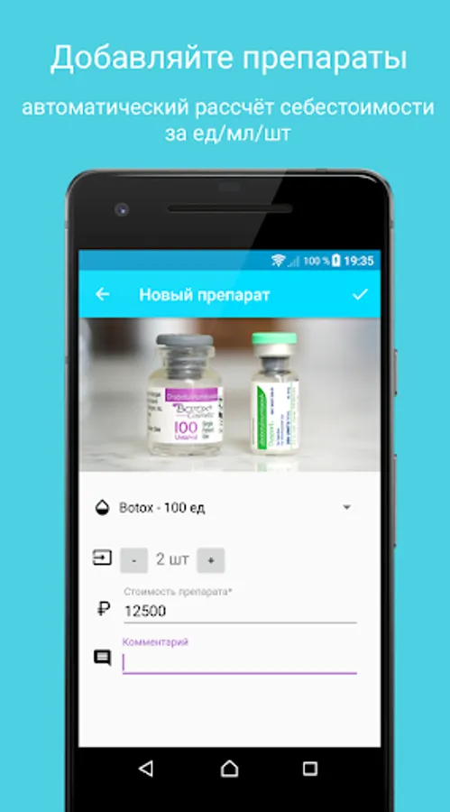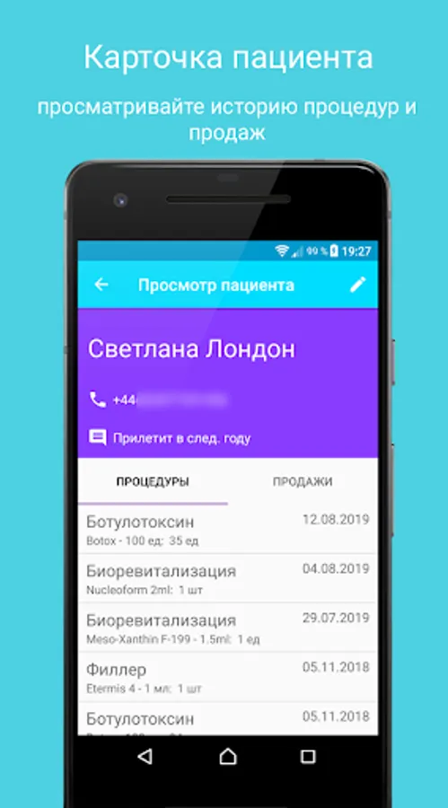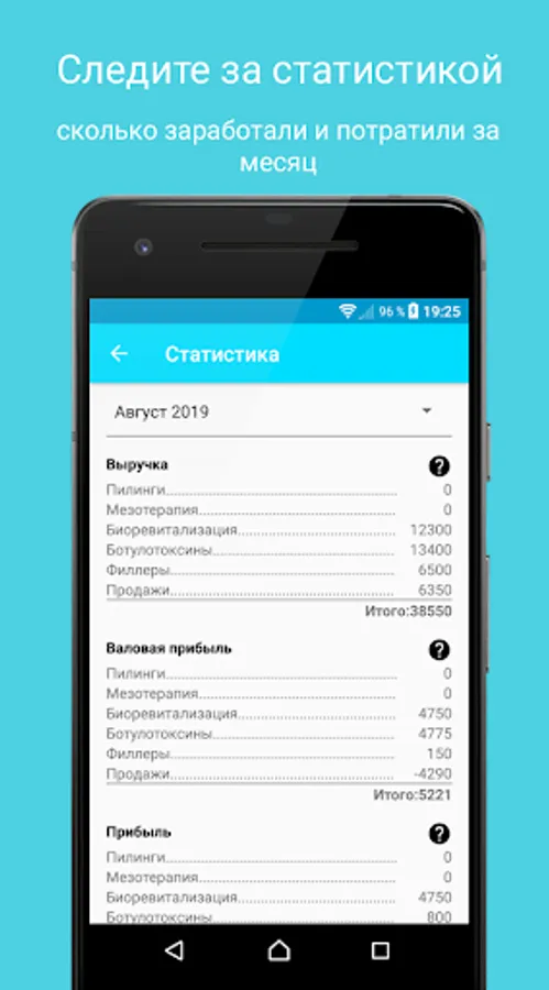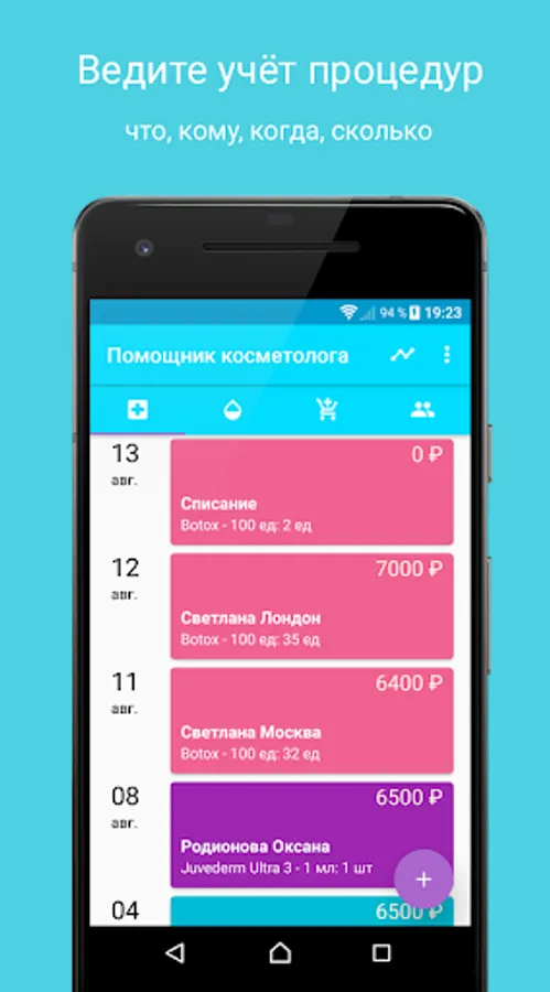 Initially, the application "Cosmetologist Assistant" was made for my wife to facilitate her account of cosmetic procedures, drugs and patients.