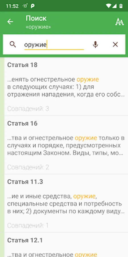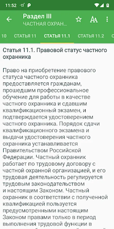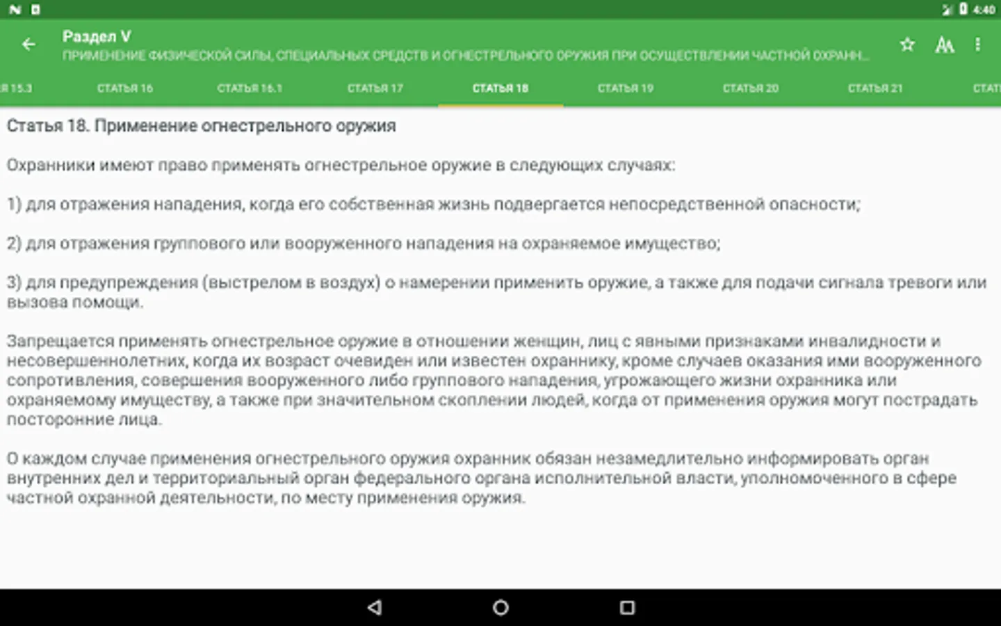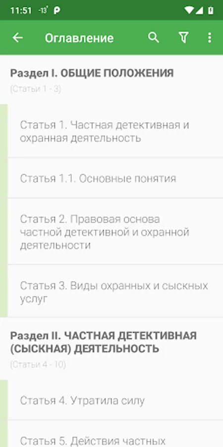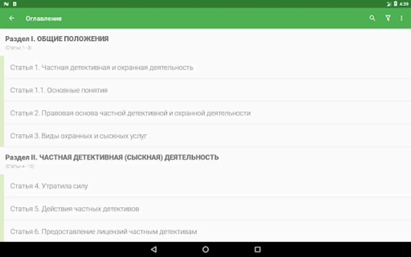 - Viewing the text of the law in the form of convenient page turning of articles, the ability to copy the selected fragment, search by text