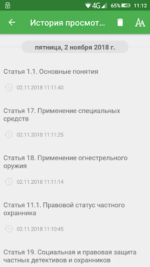 - Browsing history: the application stores the history of viewing articles, forming a list and sorting the history by the date of viewing