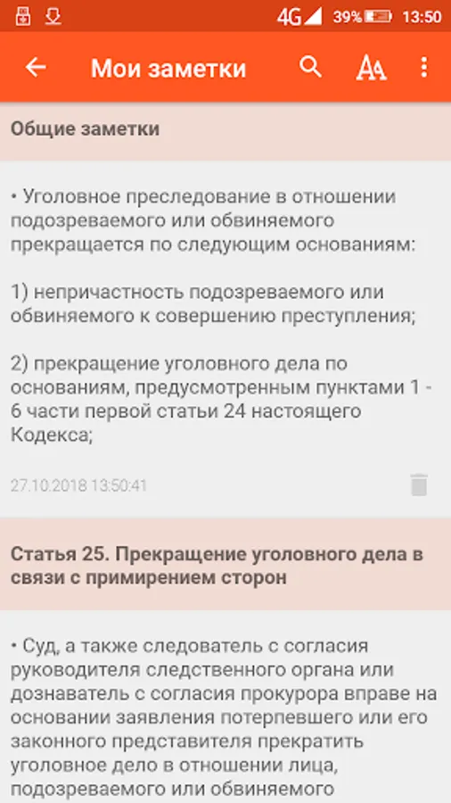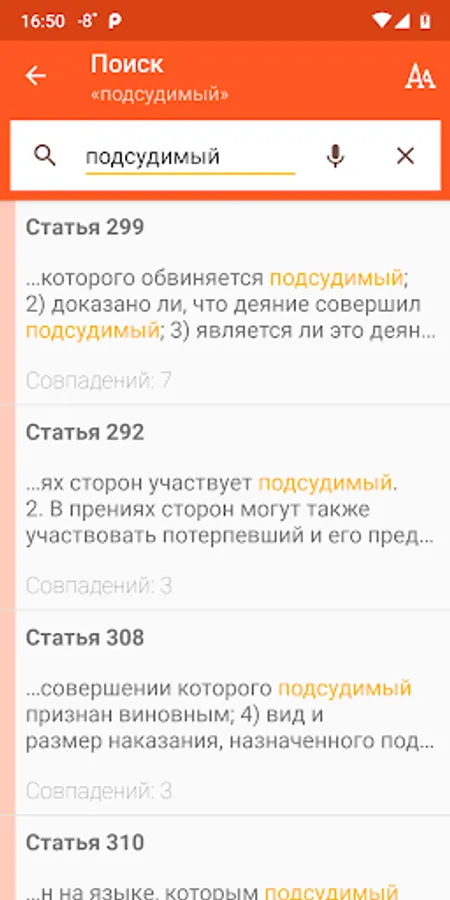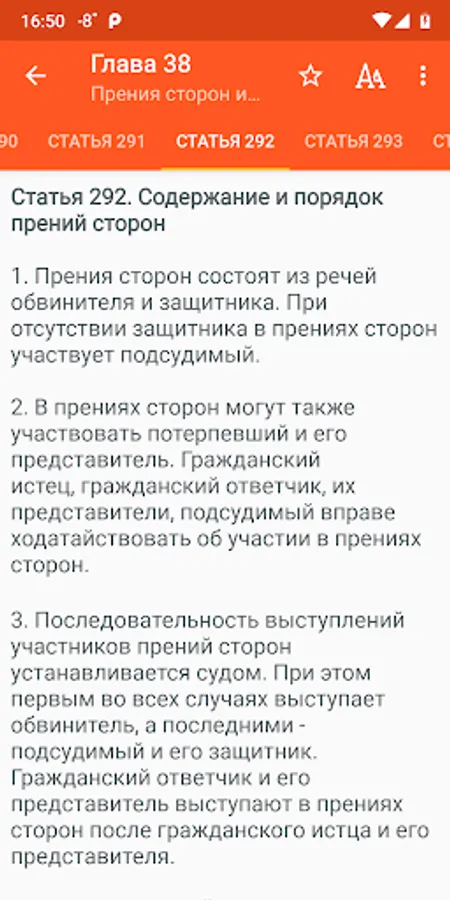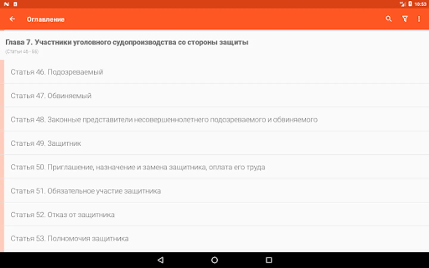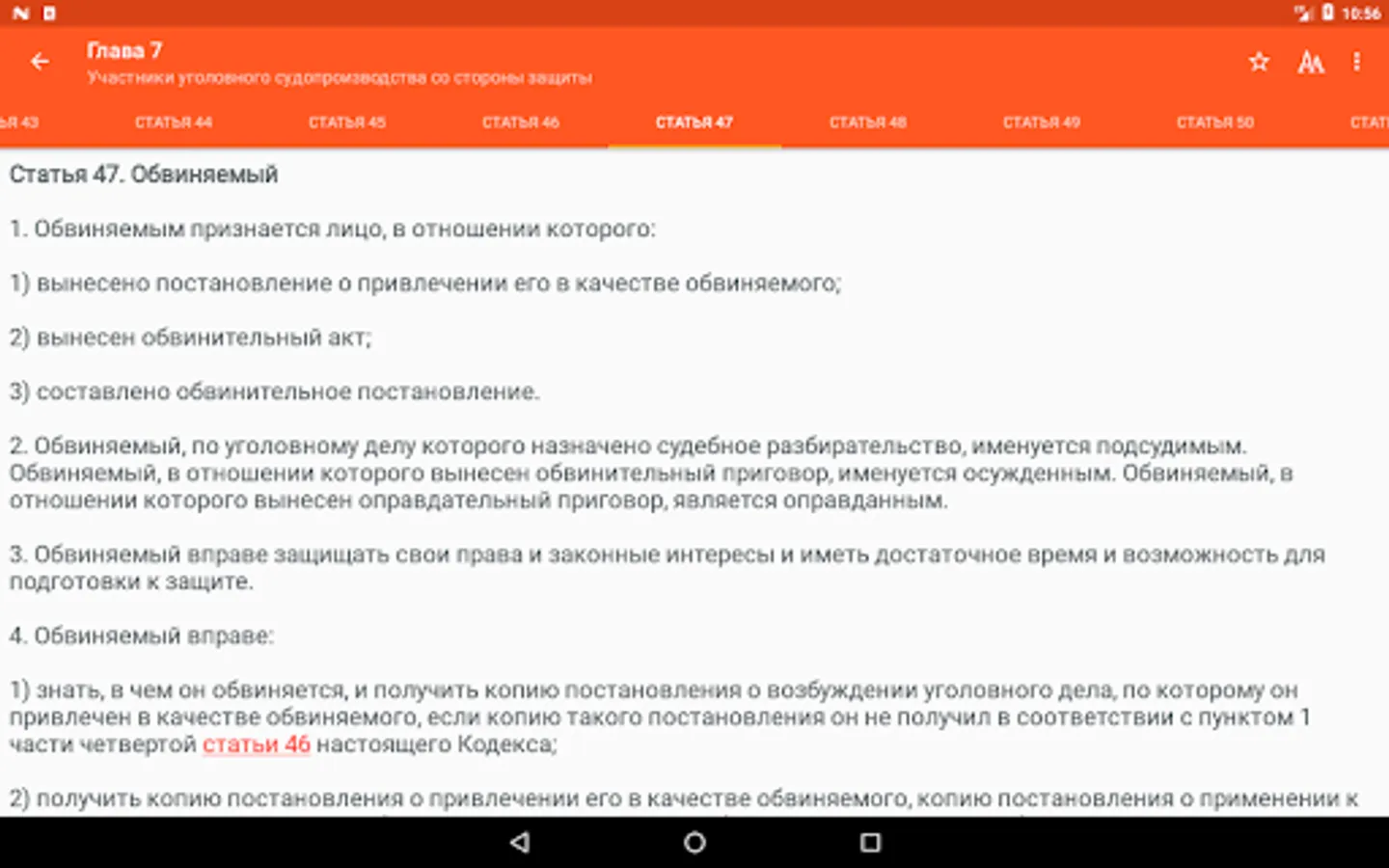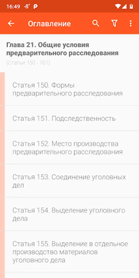 - Viewing the text of the law in the form of convenient page turning of articles, the ability to copy the selected fragment, search by text