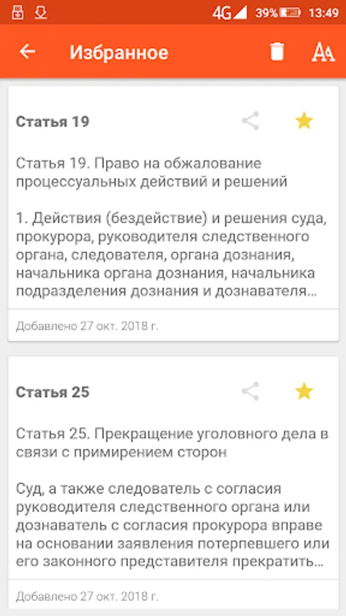 - List of favorite articles: you can highlight articles in your favorite list, with subsequent quick access to them