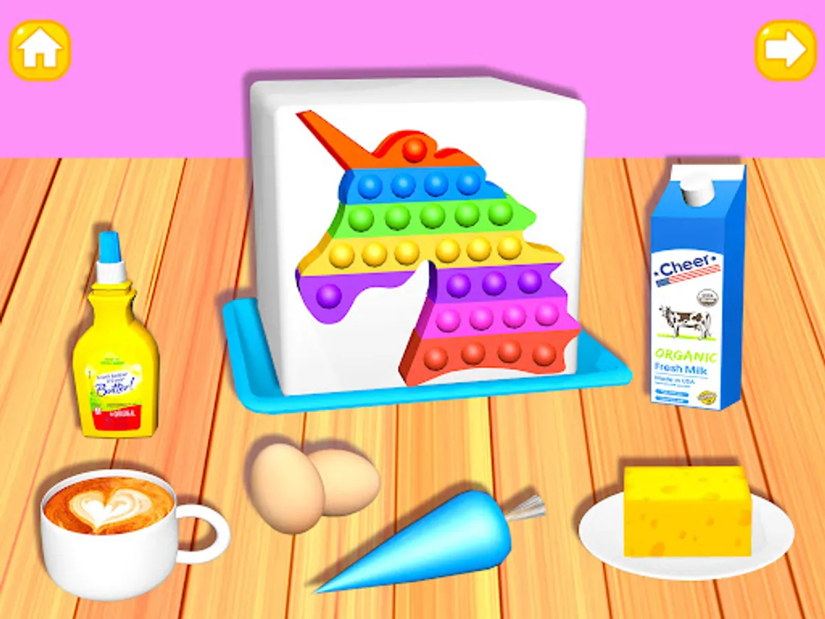 Hey friends, you can enjoy playing with pop-it toys and making cakes at the same time in this app! Now, you can make your own pop-it cakes! It’s bakery time!