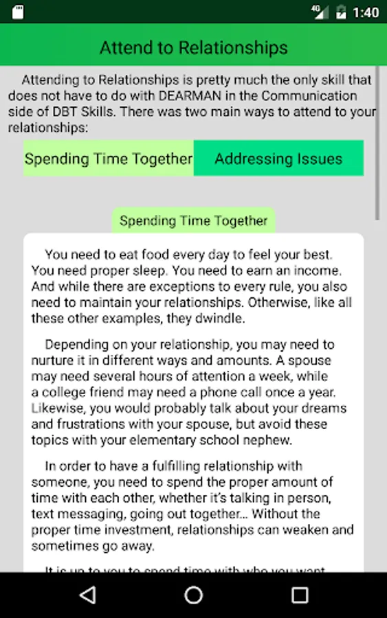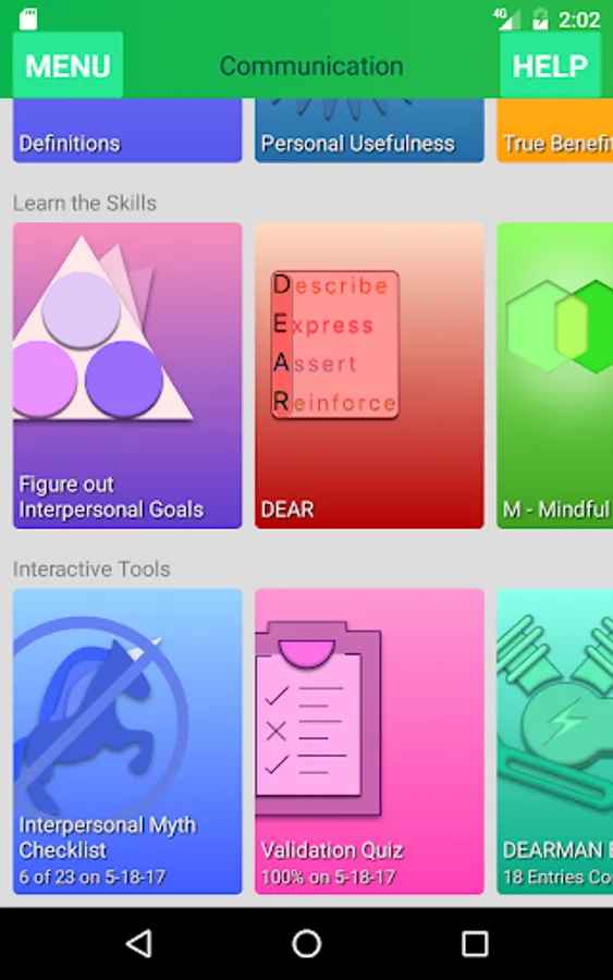 Many of these tools are powerful while you're first learning DBT. But they are also incredibly powerful as a refresher, whether it's been several years since you last practiced, or you just can't remember how to do the skill properly. Maybe you're overwhelmed, or maybe you're just new to the skill. Beginners and Advanced DBT practitioners will find value in this app now, and for years to come should they remember to use it.
