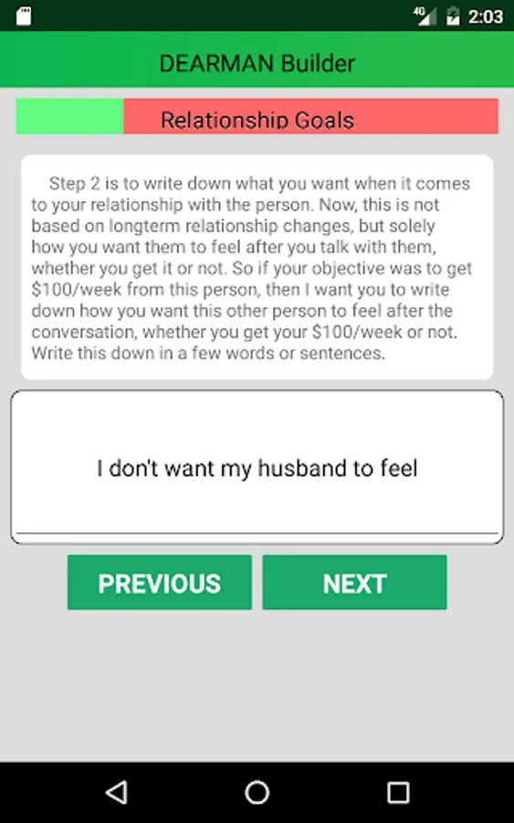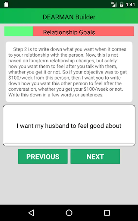 We all have things we want. If you have trouble communicating this in an effective way (a way that doesn't make things worse and increases the likelihood of you getting what you want), then this app is for you.