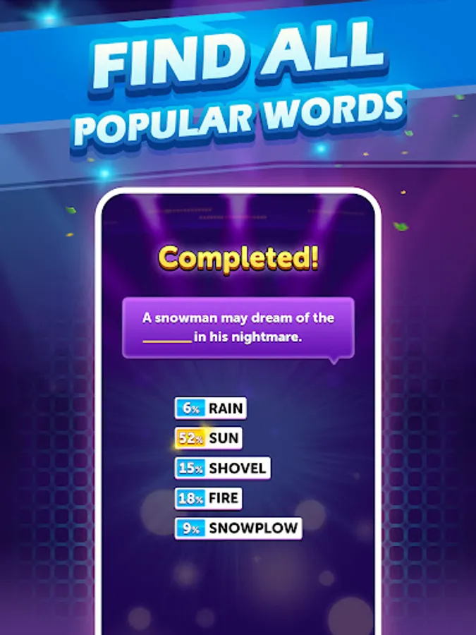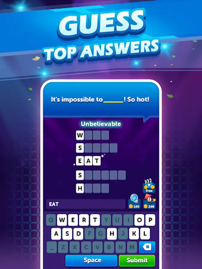 The rule is simple, just guess the 5 answers that most people gave and fill in the blanks. The initial letter and length of each answer are given, and the keyboard erases letters that are not in the puzzle.