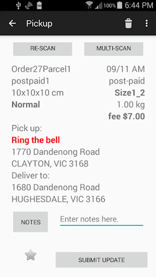 - Enter or select pre-written comments when updating Parcel Status