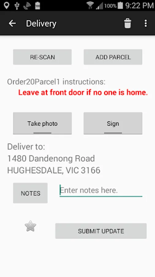 This FREE mobile app is designed to allow your driver to easily update parcel status. You may use this app on our demo site, http://demo.liveparcels.com for testing if you don't have a LiveParcels subscription. We would suggest you contact us to discuss before trying it out on our demo site.