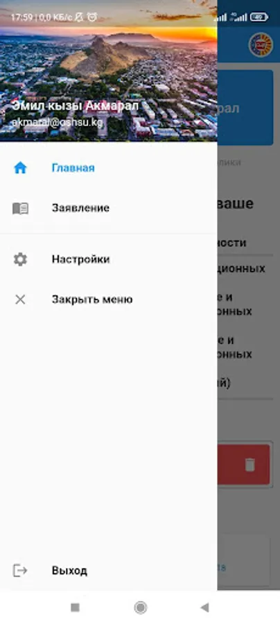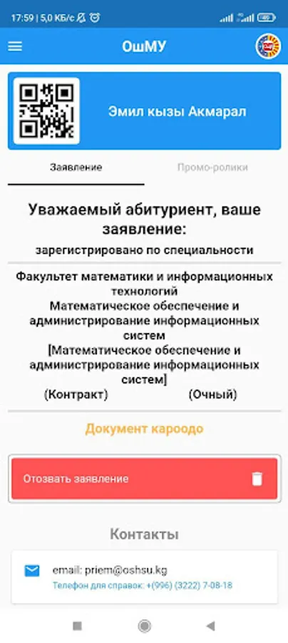 An application for submitting an electronic application and tracking the status of submitted documents in the process of admission to Osh State University.