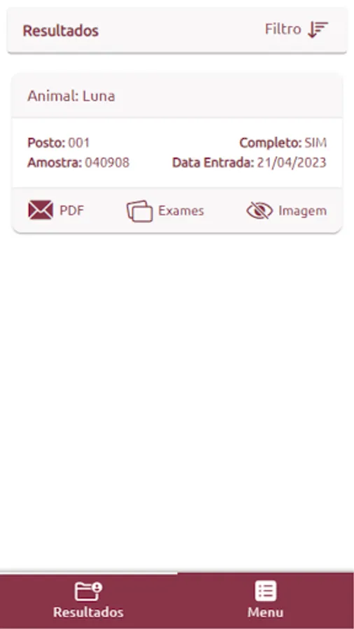 The application aims to deliver the result of the exam performed in the laboratory in a digital way, generating practicality and agility in the delivery of the same, in addition to this functionality the application also has the option of viewing the results of previous exams, helping in the comparison with the result of current exam, facilitating the physician to make a more accurate clinical decision.