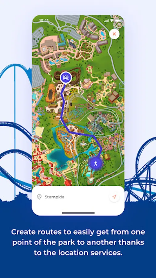 Create routes to easily get from one point of the park to another thanks to the location services.