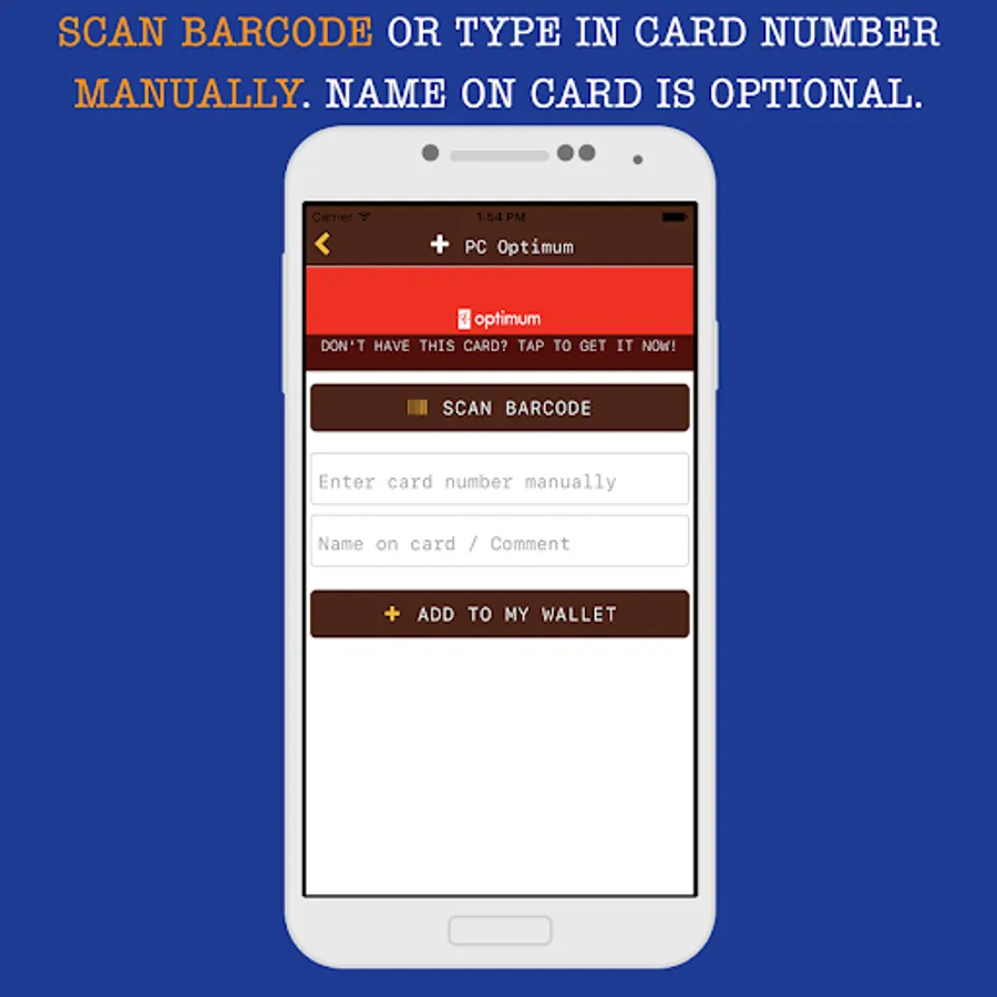 * Easy scan of the barcode or QR-code from your card.