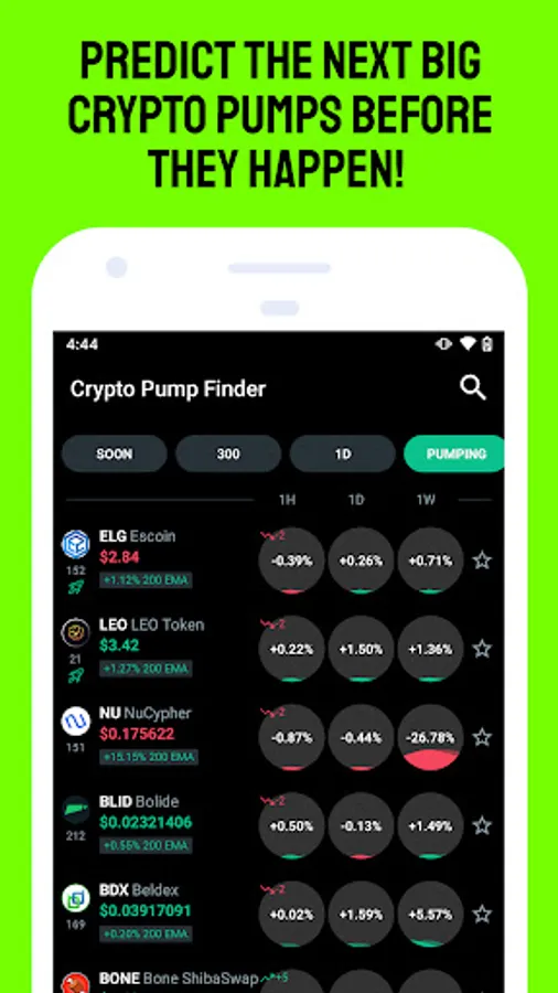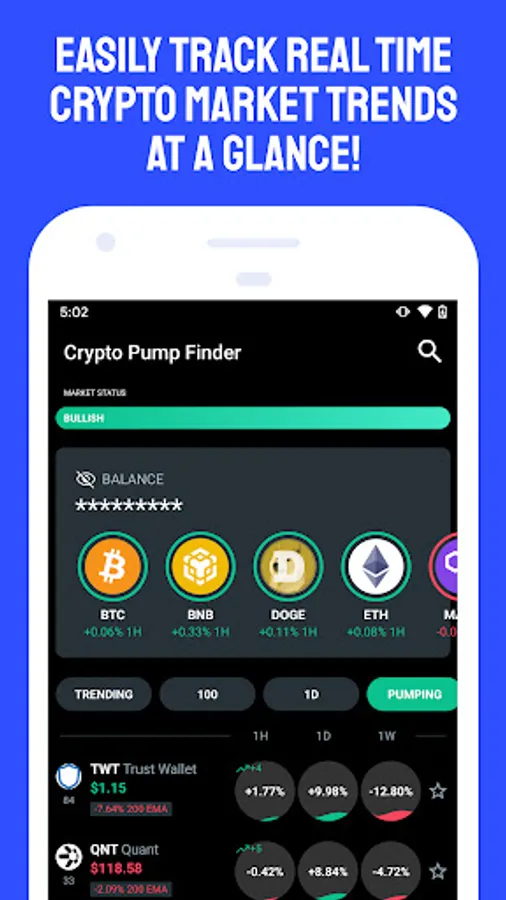 Crypto Pump Finder is an awesome tool that allows you to find and track current rising and bullish cryptocurrencies and tokens.
