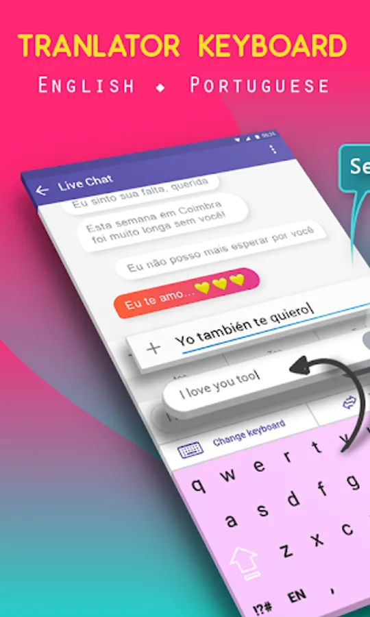 A revolution in the fields of translators keyboards, this Portuguese to English Translator Keyboard or English to Portuguese Translator Keyboard is all you could ever ask for if you need to translate between these languages while you are messaging.