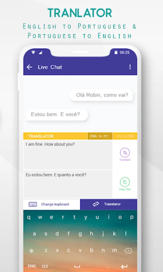 The all new Portuguese to English Translator Keyboard or English to Portuguese Translator Keyboard is here. Portuguese to English Translator Keyboard or English to Portuguese Translator Keyboard allows you to translate between English and Portuguese while you are messaging.