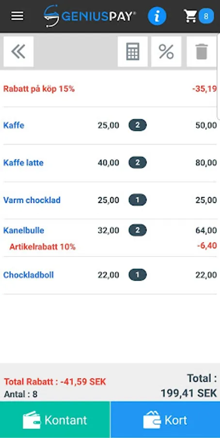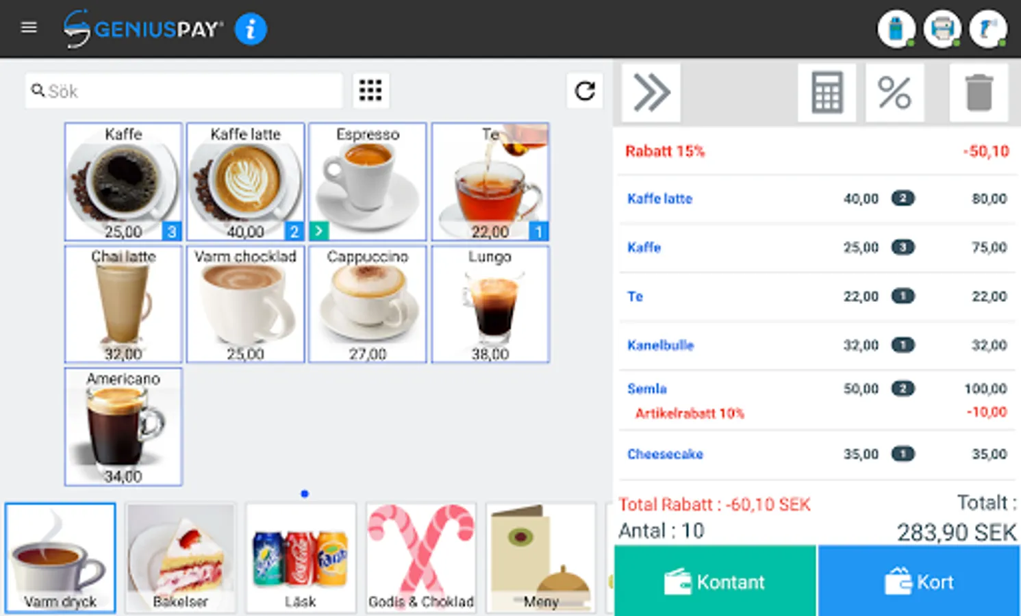 • Snabba och enkla kort- och kontantbetalningar.