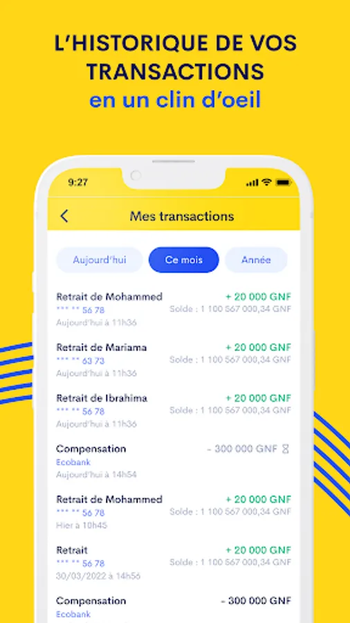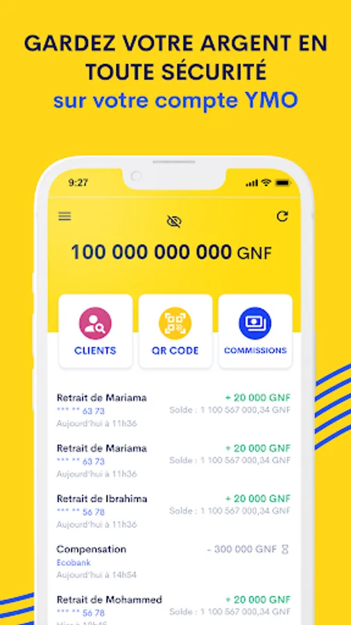 The OMY Agent application will allow you to easily carry out all withdrawal and deposit operations for your customers. So, earn commissions and increase your income now! MOY allows its customers to send and receive money internationally and throughout Guinea.