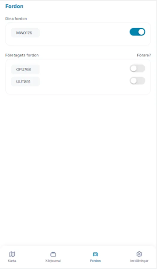 Elektronisk körjournal som uppfyller skatteverkets alla krav och lite därtill. Låt de anställda växla mellan företagets poolbilar och få en aktuell överblick över dina fordon genom vår kartfunktion. I applikationen får du upp all relevant information du behöver som t.ex. trängselskatter, milersättningar, statistik på bilparken och mycket mer.