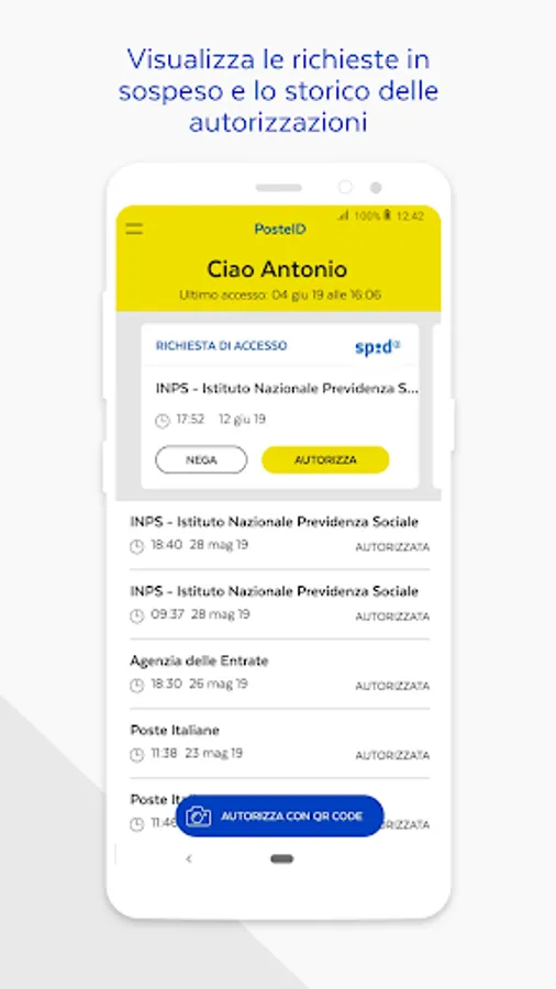You can authorize access requests using a QR Code. Just scan the QR Code shown on the service login page and enter the PosteID code on the App.