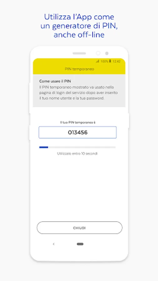 You can also access to the services with a temporary PIN generated in the App, even if this is off-line.