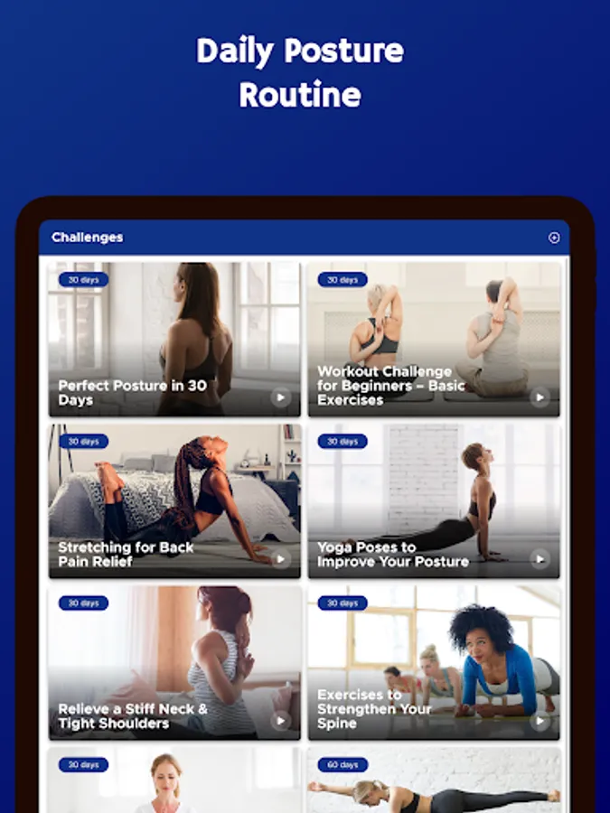 - 7 to 20 minute, daily exercise plans to reverse bad posture caused by long-term habits