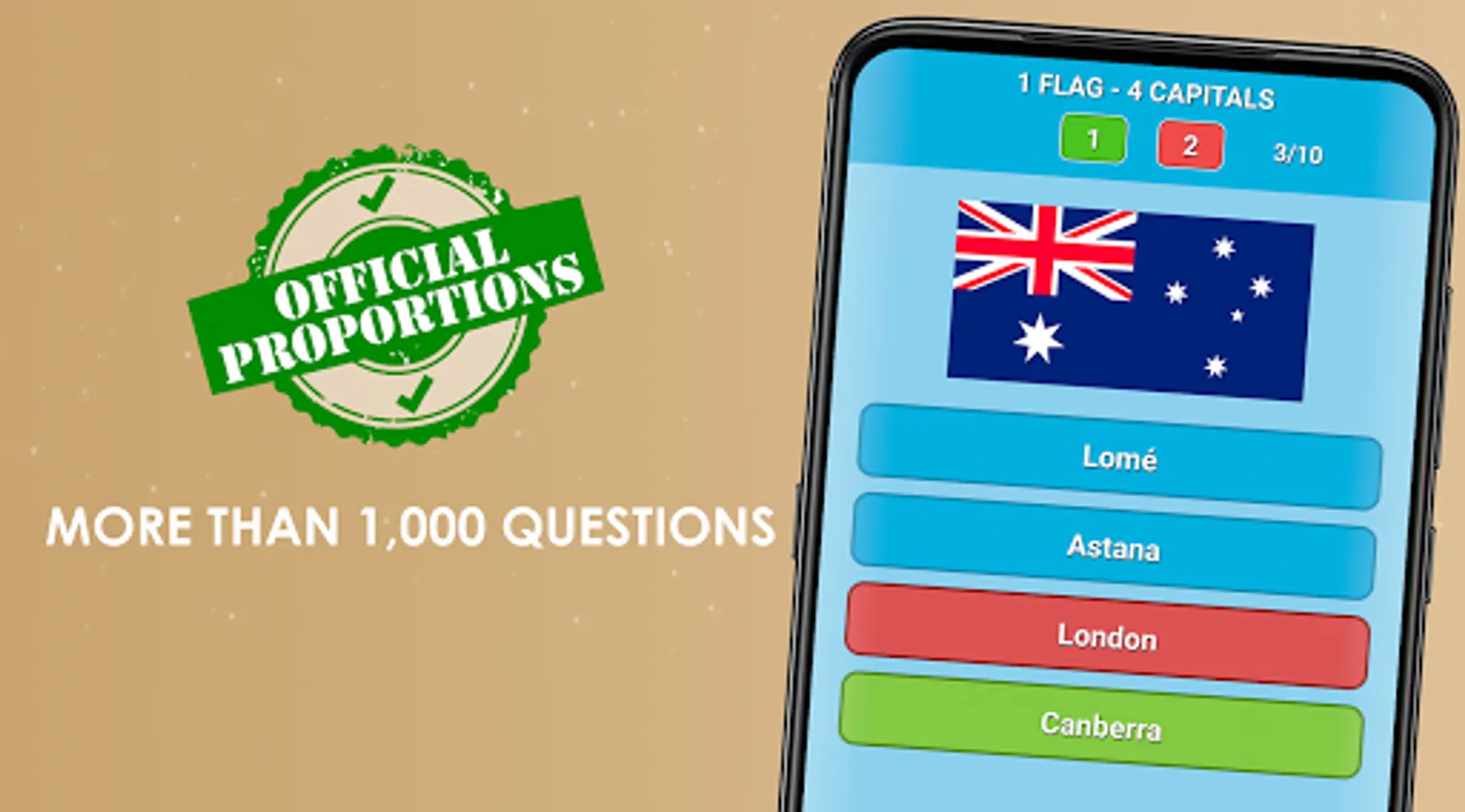Do you already know all the countries and capitals of the world? Do you get all the geography questions asked? Do you want to learn the flags of the world that you don't know yet? Practice a lot to impress your friends and family when you encourage them to play with you. They will realize that they need to learn world geography! 😱 😬
