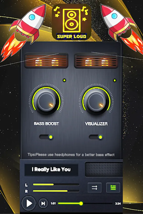 You can improve sound effects on your phone to enjoy you favorite tracks to the fullest, by adding a subwoofer bass booster to your tracks .Super Loud Speaker volume offers direct access to Android Media Player with one click