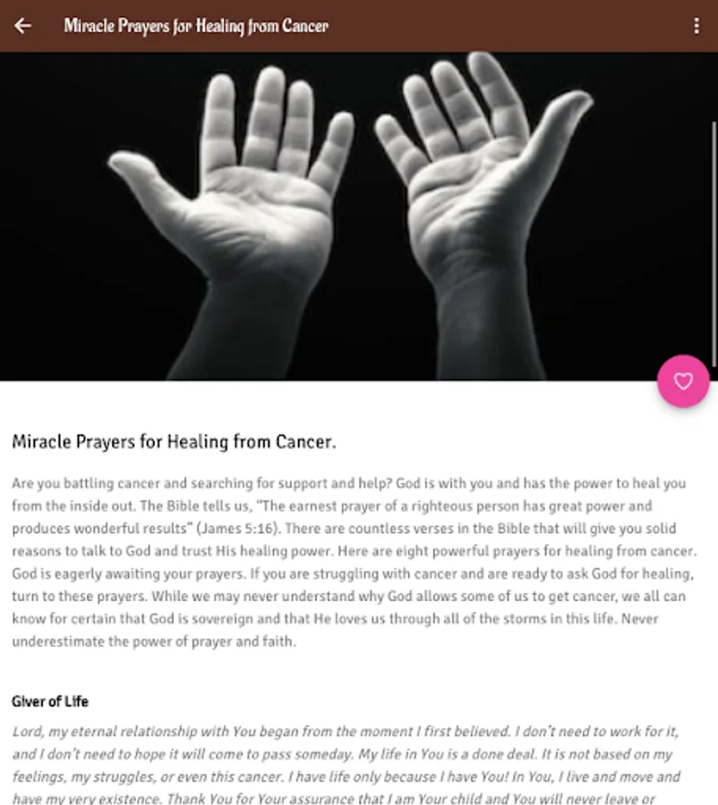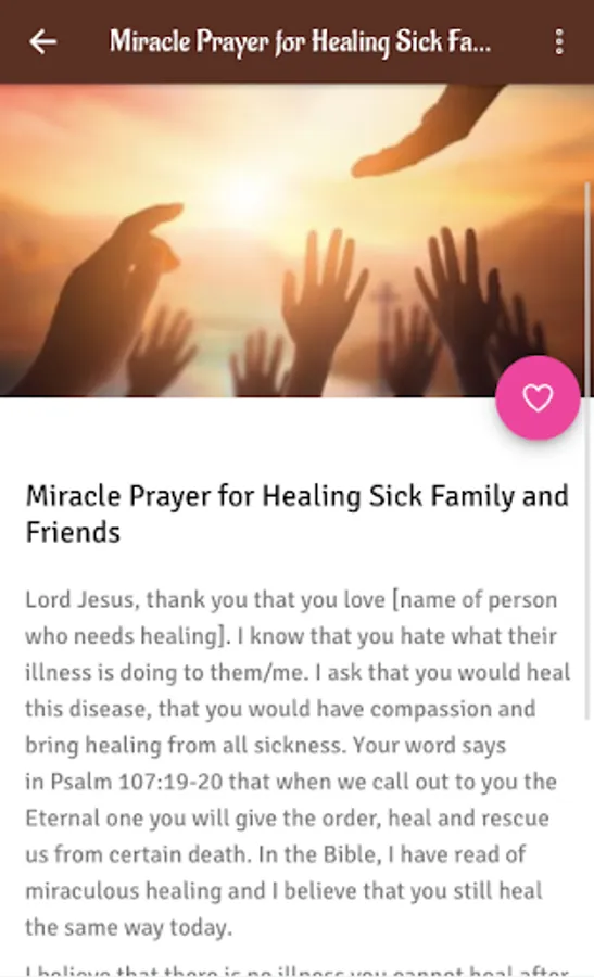 Miracle Prayer for healing. For many, prayer is a way of life. Every day people pray for things big and small: for the health of their loved ones, for safety in their communities, for their marriages, and even to put food on the table. It’s no surprise that when we are faced with tough situations, whether it is an illness or feeling lost in this world, our first instinct is to pray.