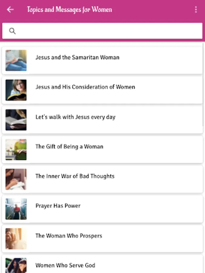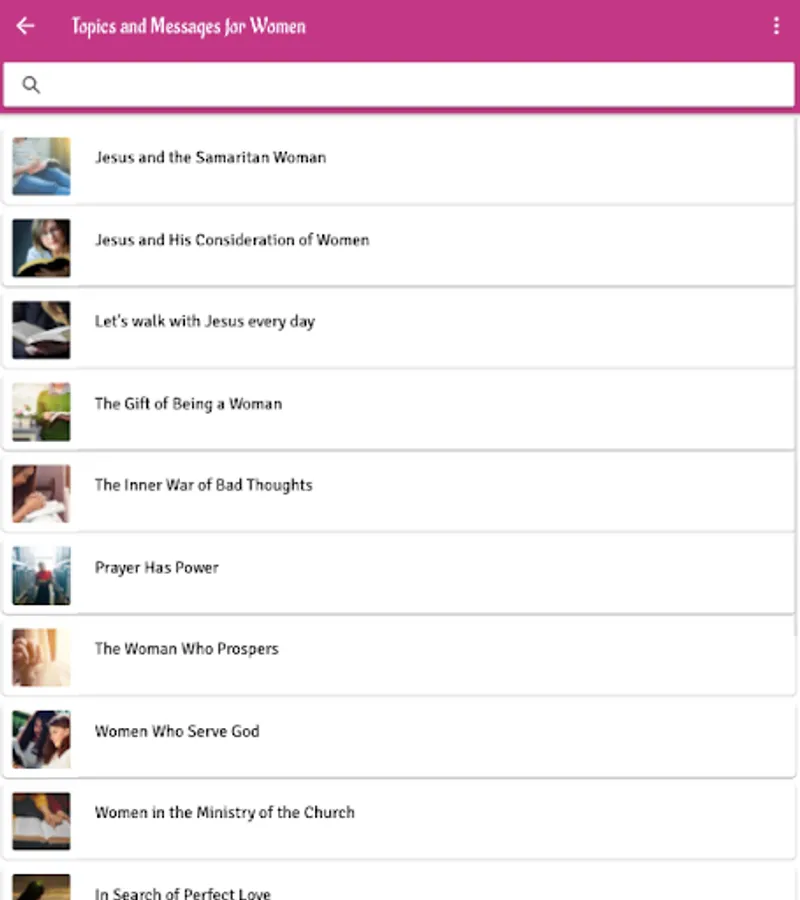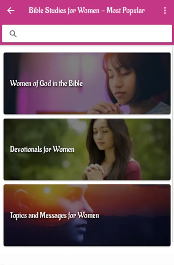 Biblical Studies for Women is a free app that lets you navigate all the wisdom of God's Word in plain, simple language with just a few clicks. Hundreds of Bible topics and resources for women. Special themes to discover the women of the Bible and be a woman after the heart of God. It will help you expand your wisdom about our Lord Jesus Christ. Discover the Women of the Bible and a wide range of sermons, devotions, Bible studies, messages and topics for Christian women.