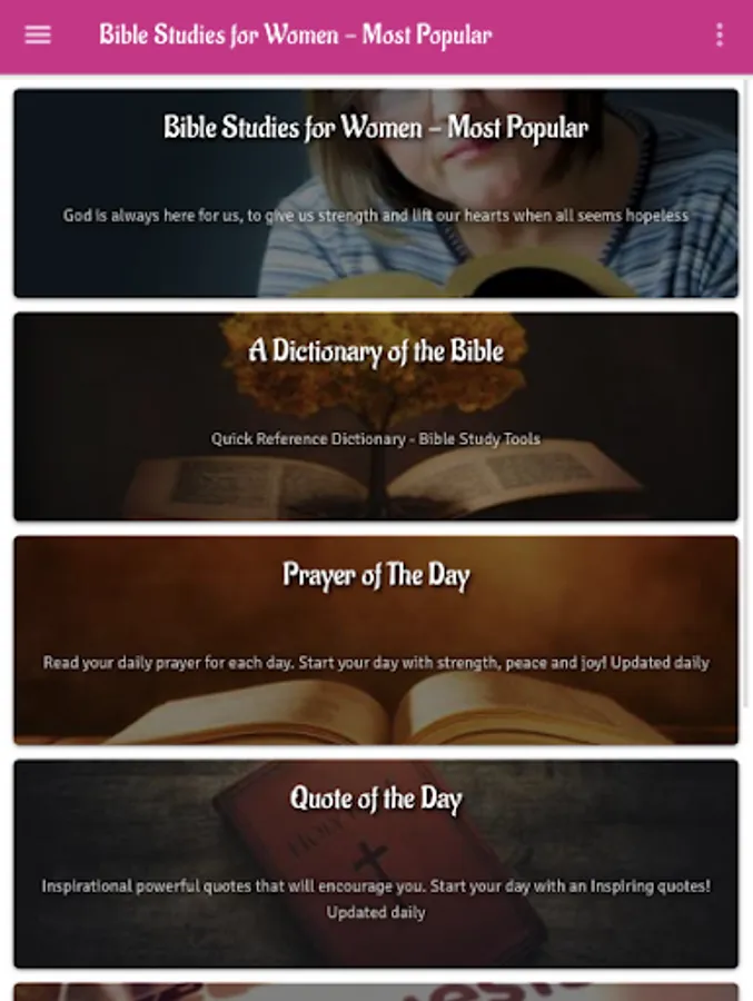 Bible to strengthen women’s faith. When you need to lift your spirits or tackle life’s challenges, the Bible is always there to offer guidance. This inspiring approach to Bible study for women combines a daily prayer reading application.