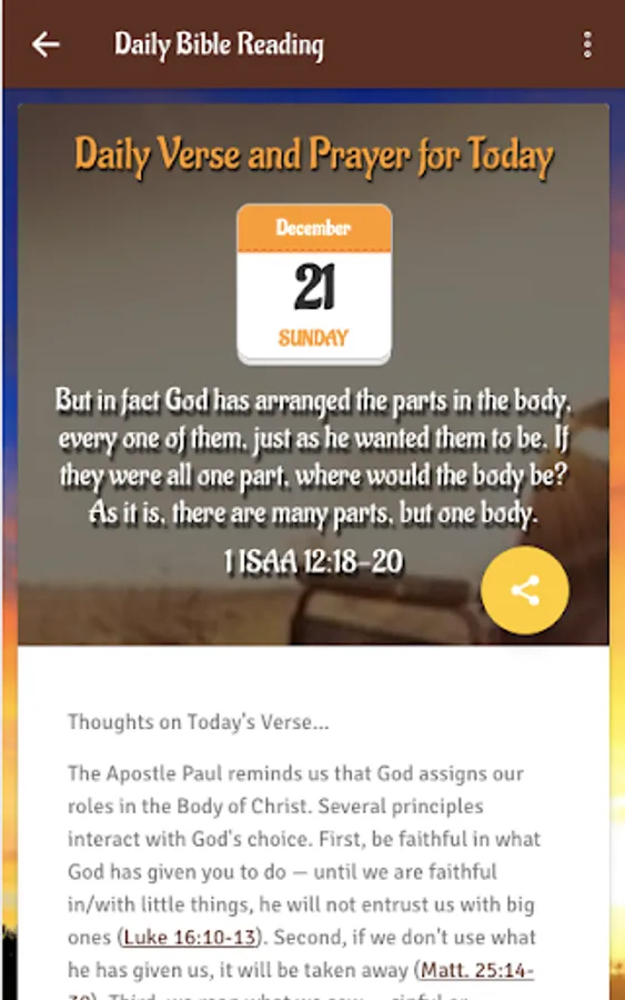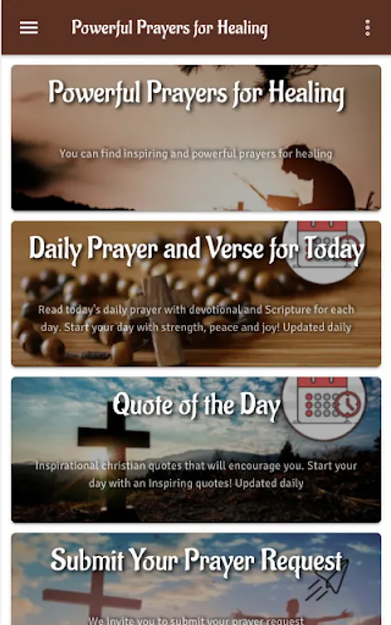 Daily Prayer and Verse option brings you daily Bible verses & religious inspirational devotions. Receive a morning bible verse and prayer for every day of the year.