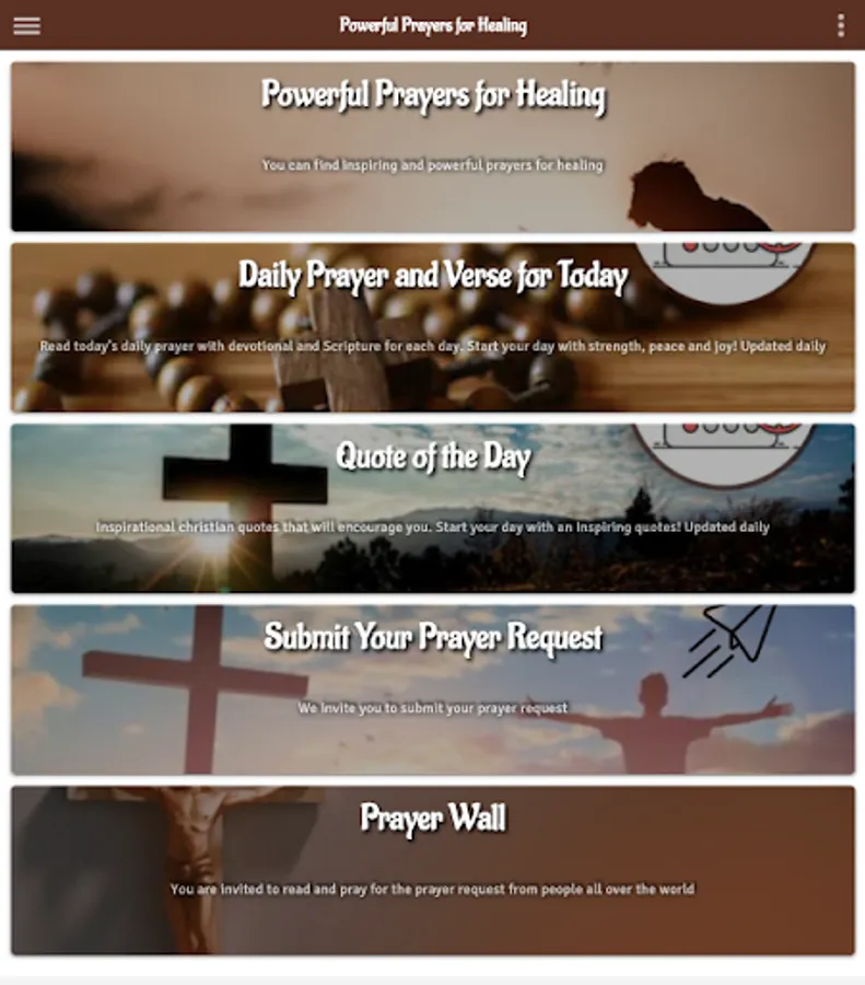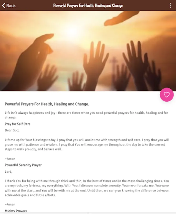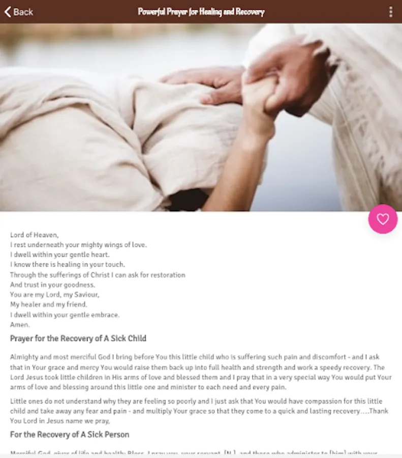 You can post your prayer request on this application and let other people around the world pray for you / with you so that come up from your illness and achieve your dreams faster.