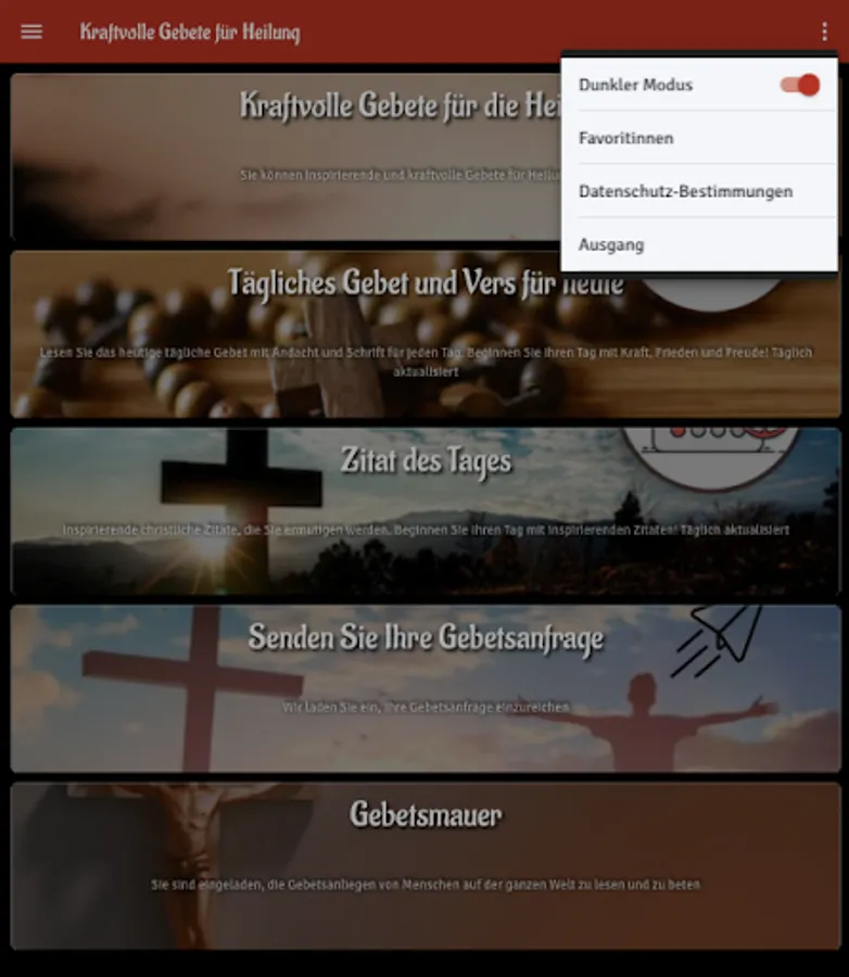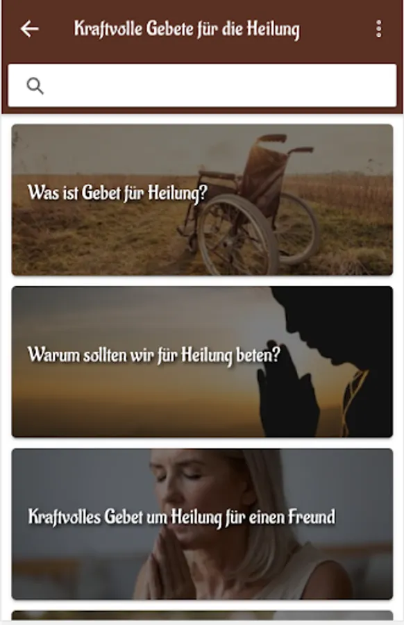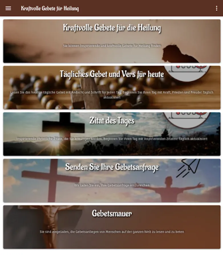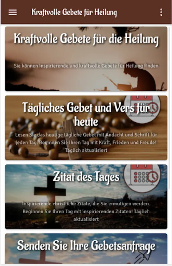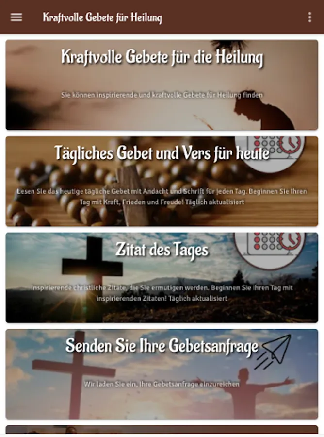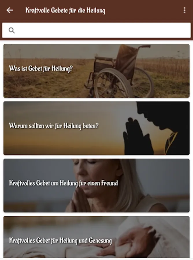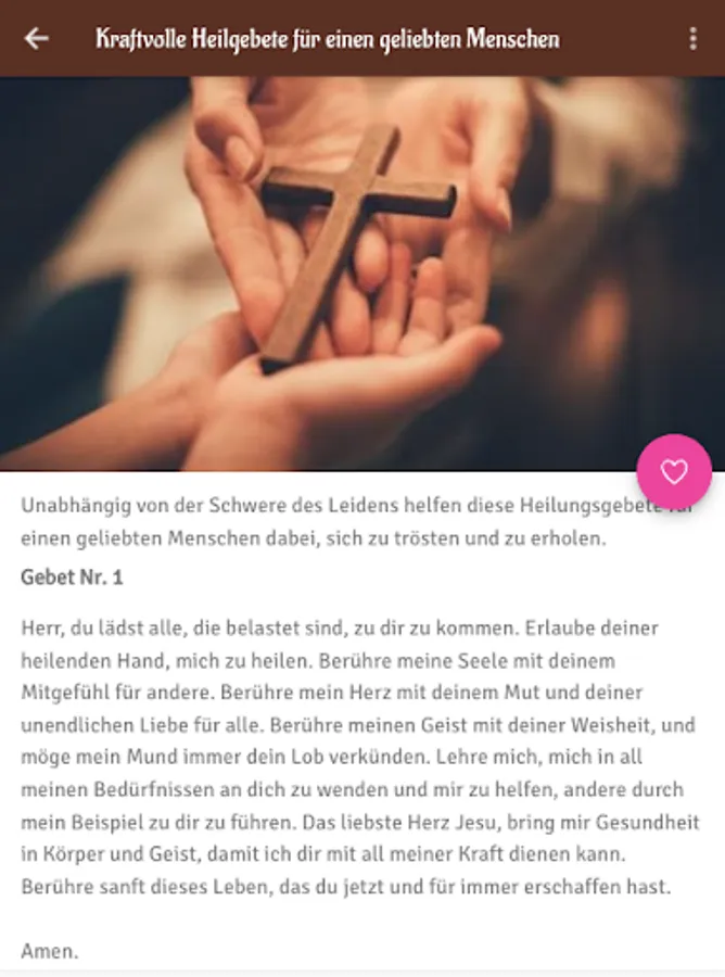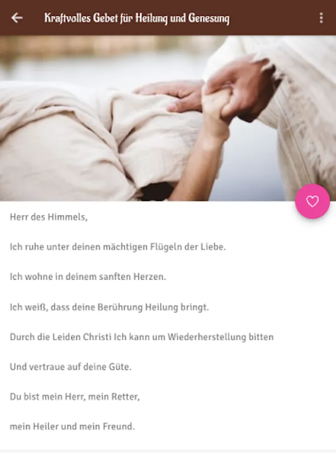In this app you will find inspiring prayers for healing from illness, strength, comfort and a broken heart. Prayers and quotes from the Bible to heal yourself, family members, or a special friend in need. Read these prayers aloud or in silence.